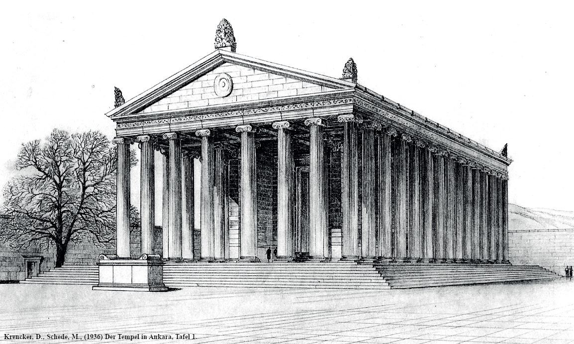 Res Gestae Divi Augusti iki dilde tapınağın duvarlarında yer alır. Augustus’un askeri zaferleri, inşa ettirdiği anıtlar, Roma halkına sağladığı hizmetler ve siyasi kariyeri boyunca gerçekleştirdiği reformları içeren bu yazıtın Latincesi tapınağın pronaosunda yer alır.