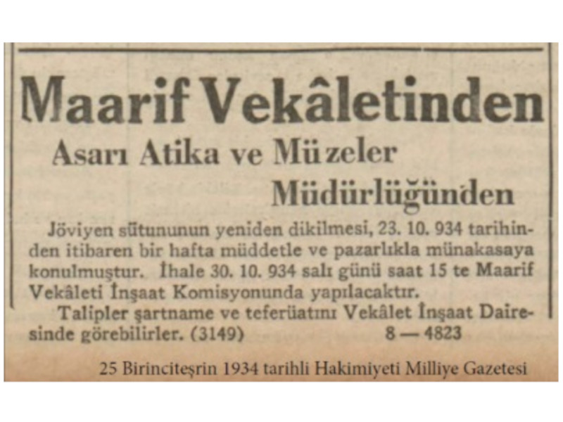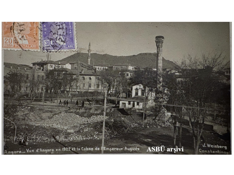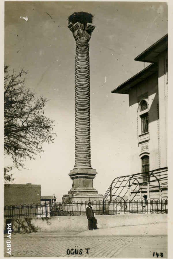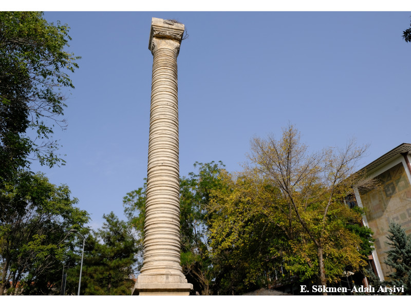 The Belkıs Column, named after the neighborhood that existed in the area during the Ottoman period, was relocated to its current position in October 1934 after tilting due to the construction of surrounding buildings. The column is depicted immediately in front of Hasan Paşa Bath in the painting View of Ankara. Although widely known among the public as the Belkıs Column, there is no definitive information regarding the individual in whose honor it was erected. However, it is most commonly associated with Emperor Iulianus (A.D. 361–363), who passed through Ankara during his Parth campaign. Originally composed of 15 drums, the column lost one drum during the relocation process due to damage. Consequently, when it was re-erected, it was placed on a base with only 14 drums, reaching a total height of 12.94 meters.