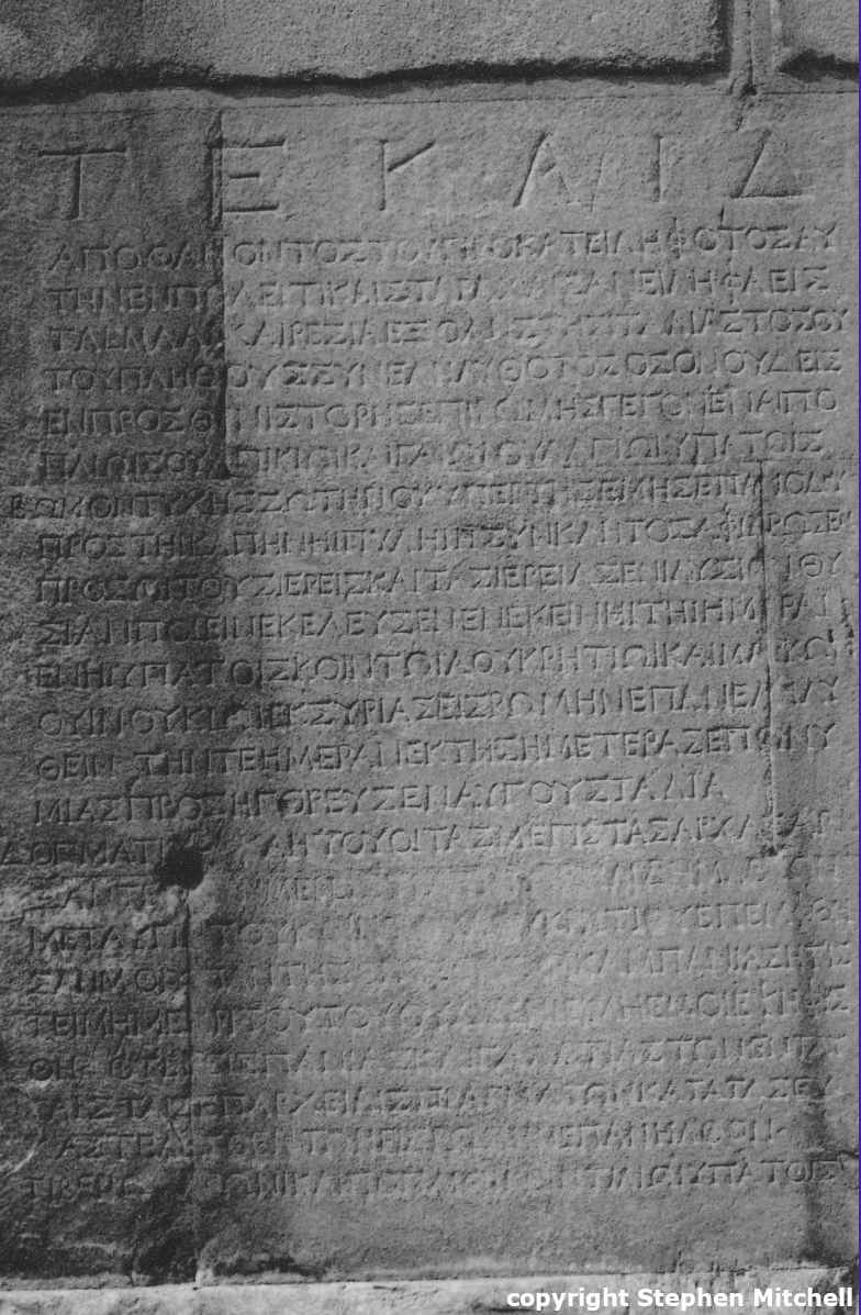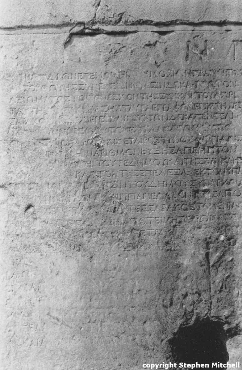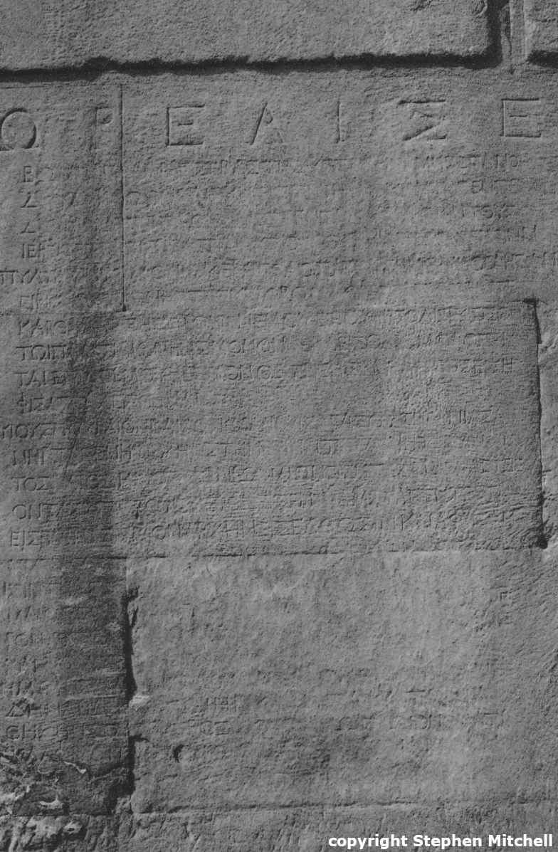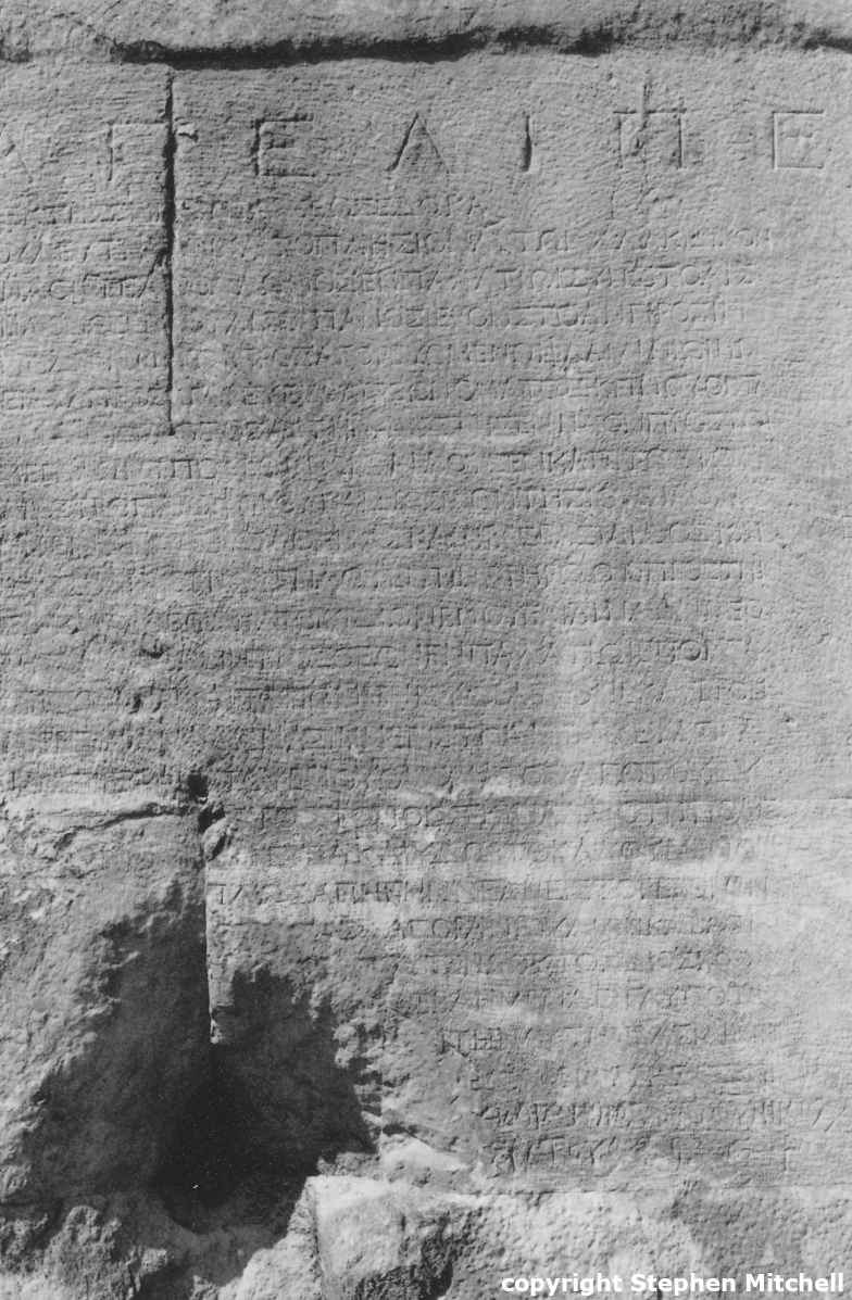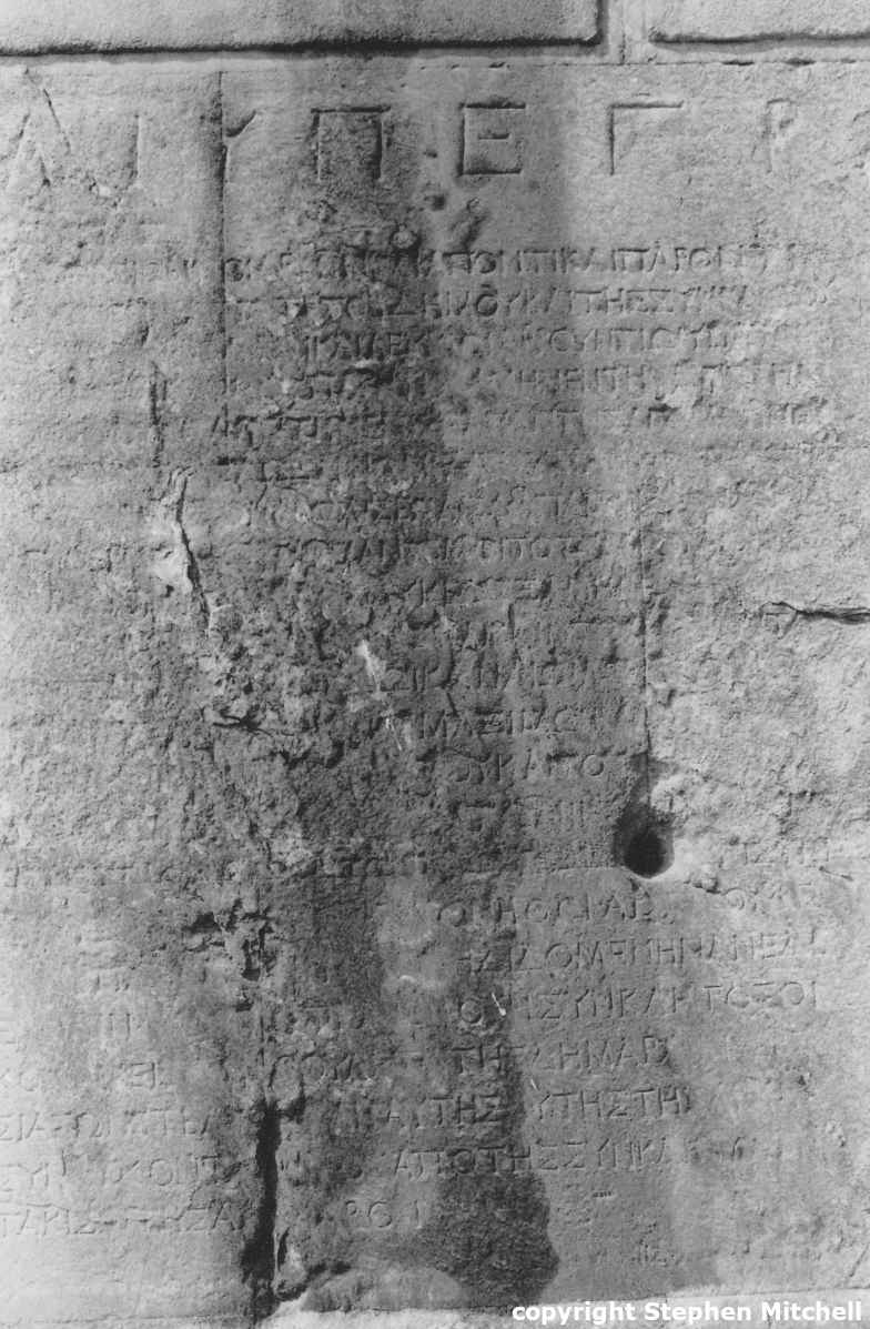 The Greek version of the inscription is located on the southeastern wall of the temple. During the Ottoman period, it was preserved as it remained within the interior of houses built adjacent to this wall. However, it was also partially damaged due to the recesses where the ceiling beams of these houses were embedded. The inscription consists of 35 sections and 1 appendix and is engraved in 19 columns. The English text presented here is shared with the permission of Professor Dr. Alison E. Cooley. (A. E. Cooley. 2009. Res Gestae Divi Augusti, Text, Translation, and Commentary, Cambridge University Press.) The Turkish text is included here with the permission of Professor Dr. Turhan Kaçar.